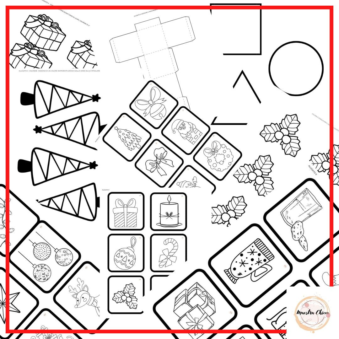 - 24 schede da colorare con gli elementi natalizi per la creazione del libro dell'avvento.
