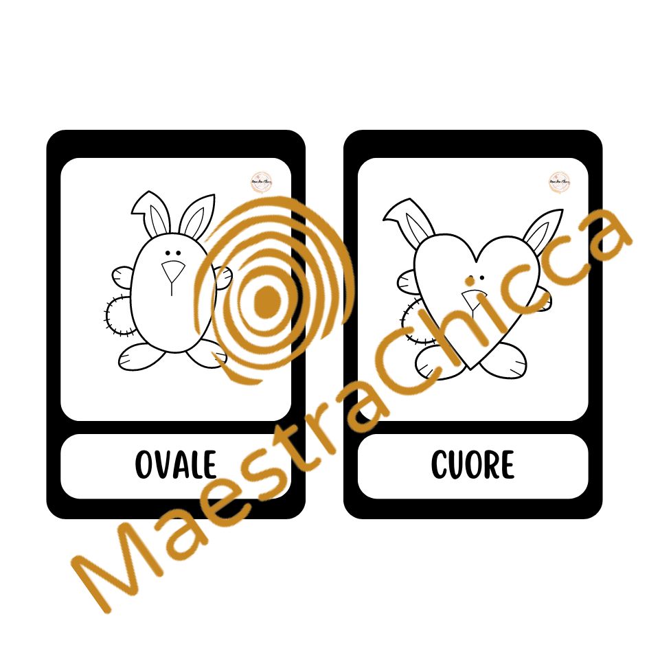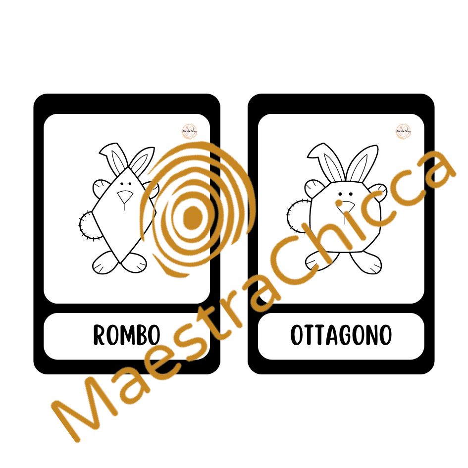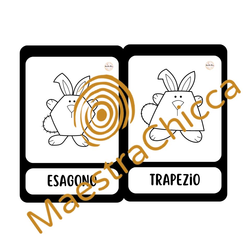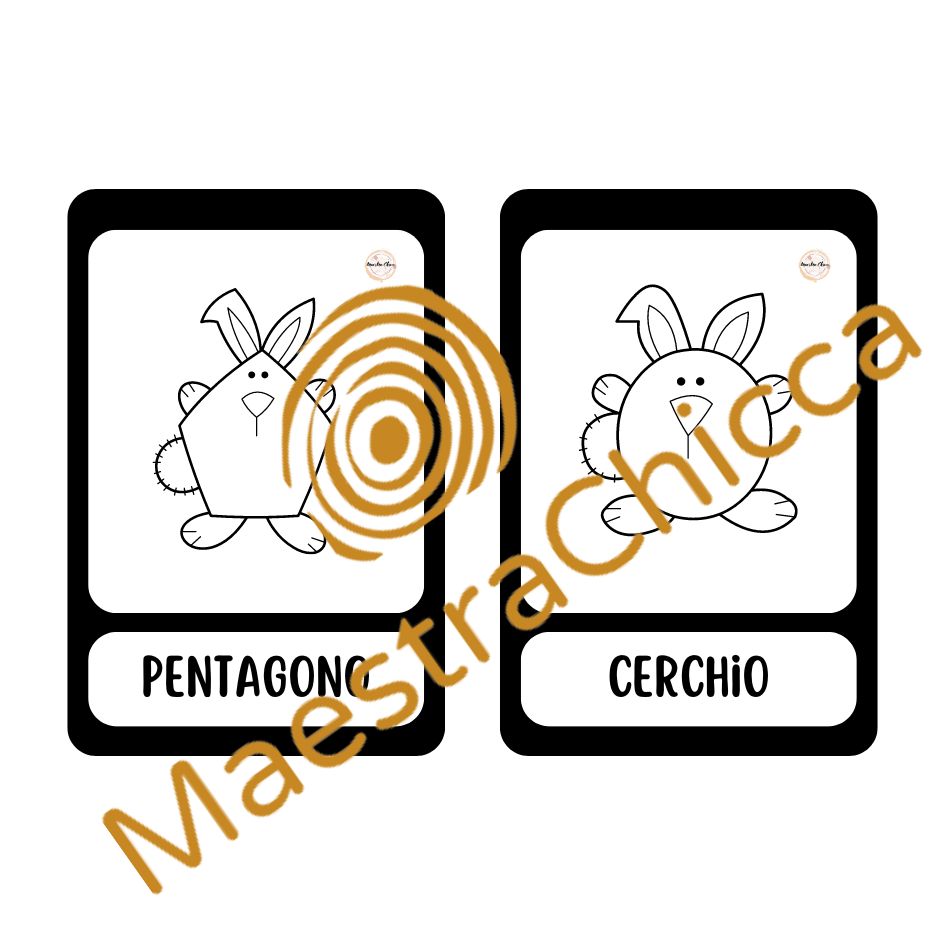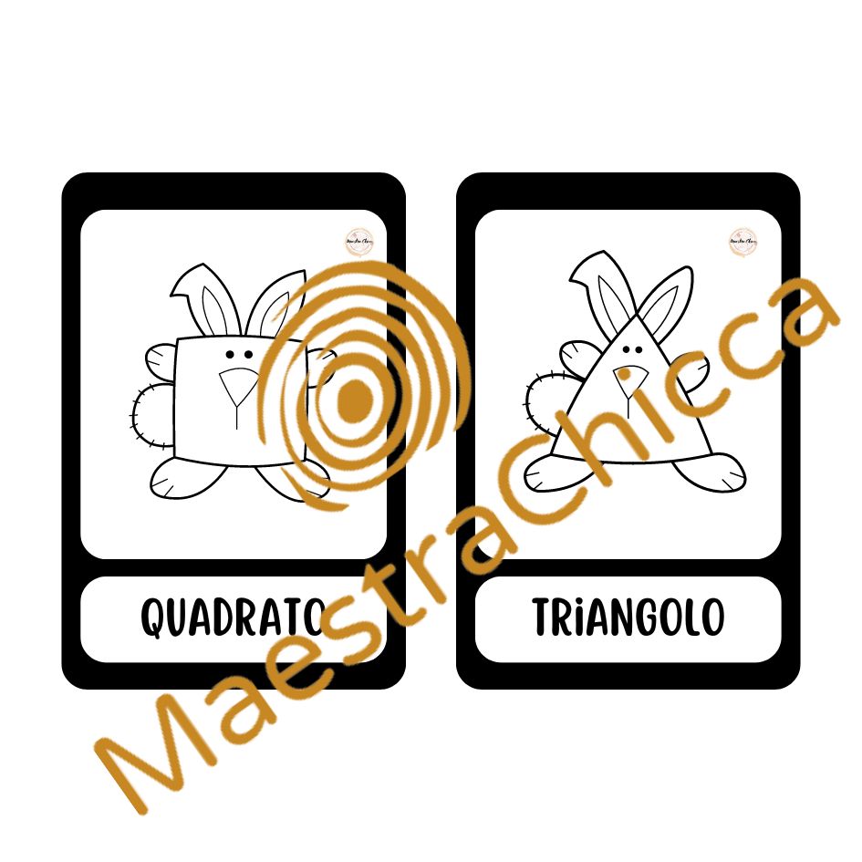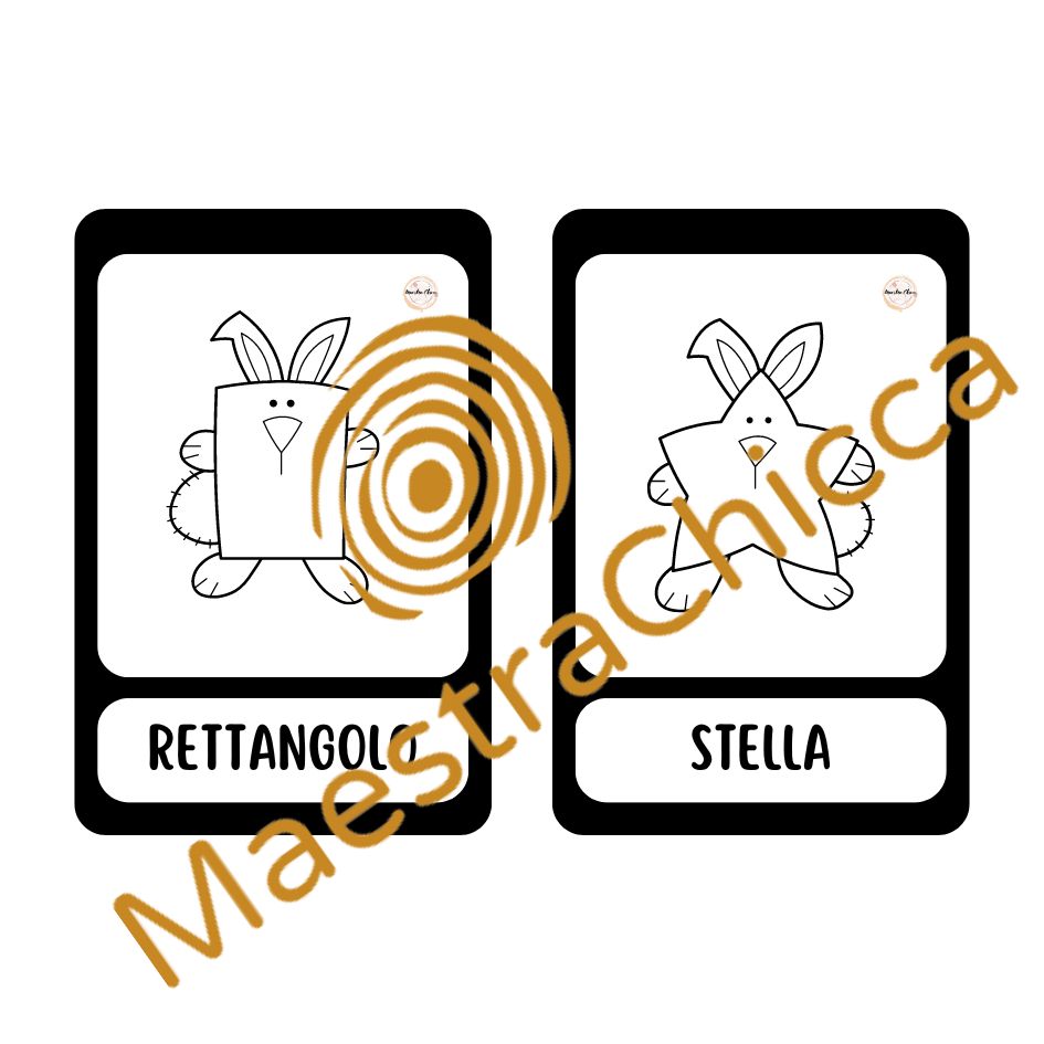 In ogni carta trovi un coniglio con una forma geometrica differente.