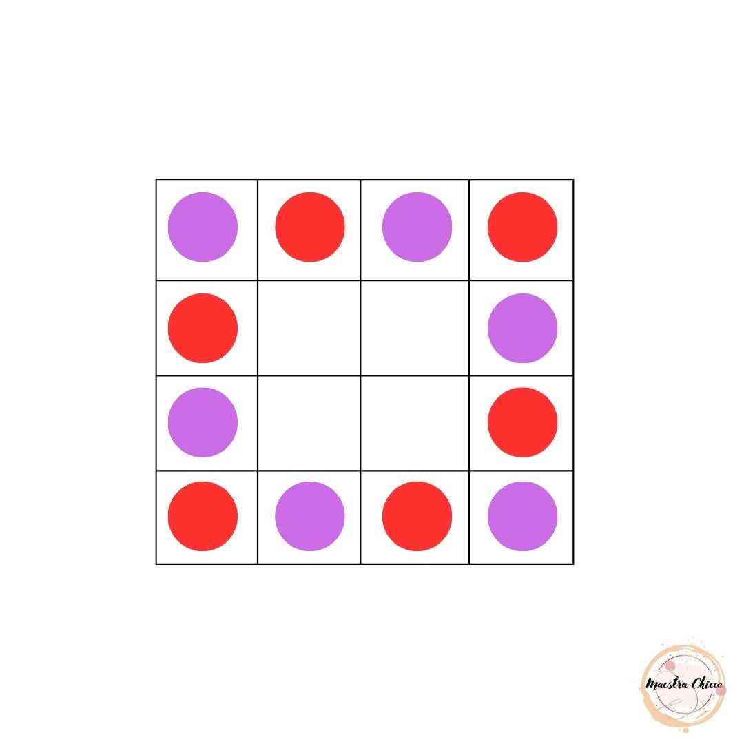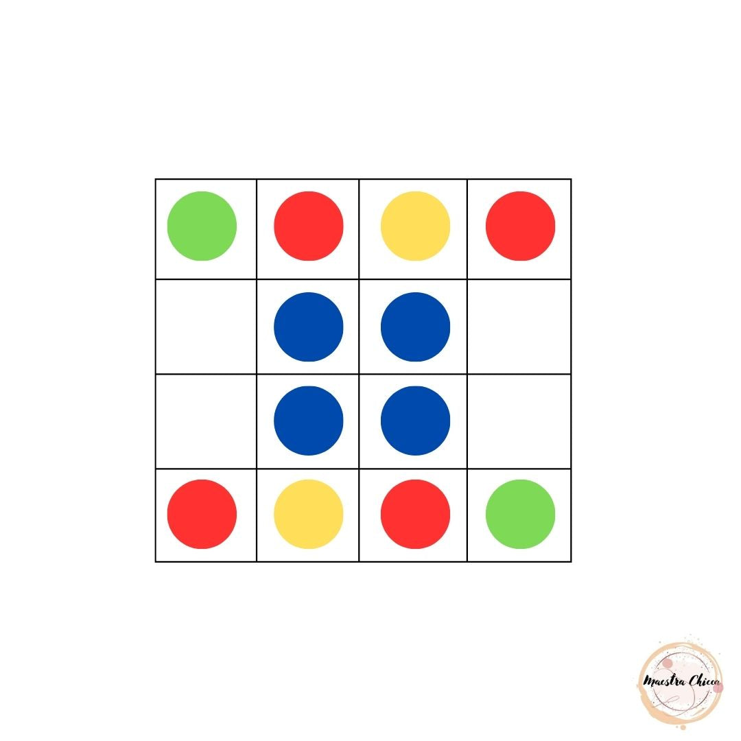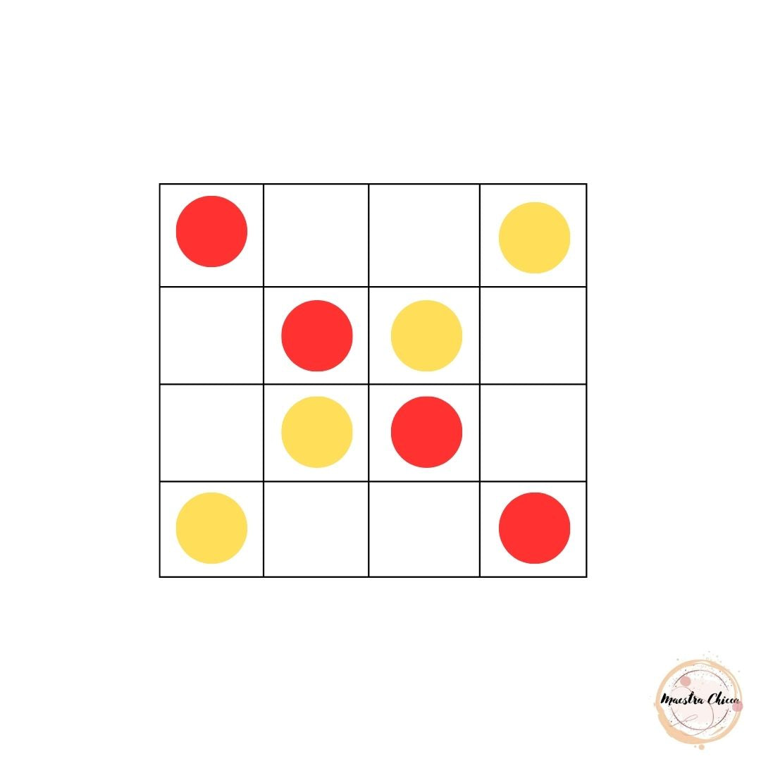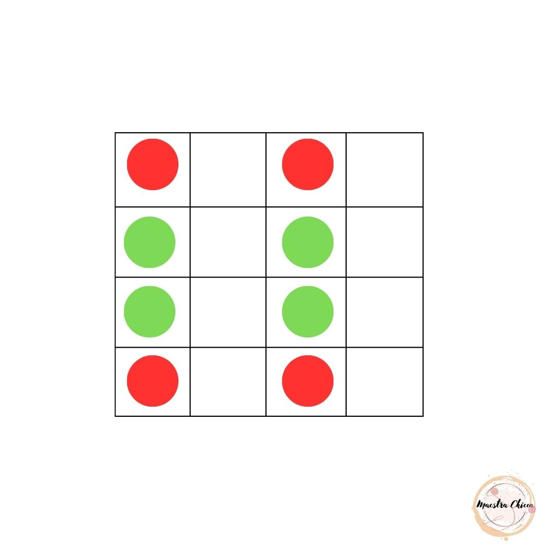 ISTRUZIONI: selezionare una scheda e ricreare il motivo sulla griglia vuota usando i poms. Puoi fornire pinze in modo che i tuoi studenti possano anche lavorare sulle abilità motorie. Fornire un vassoio o una tovaglietta su cui gli studenti possano lavorare in modo che venga mantenuto tutto ordinato.