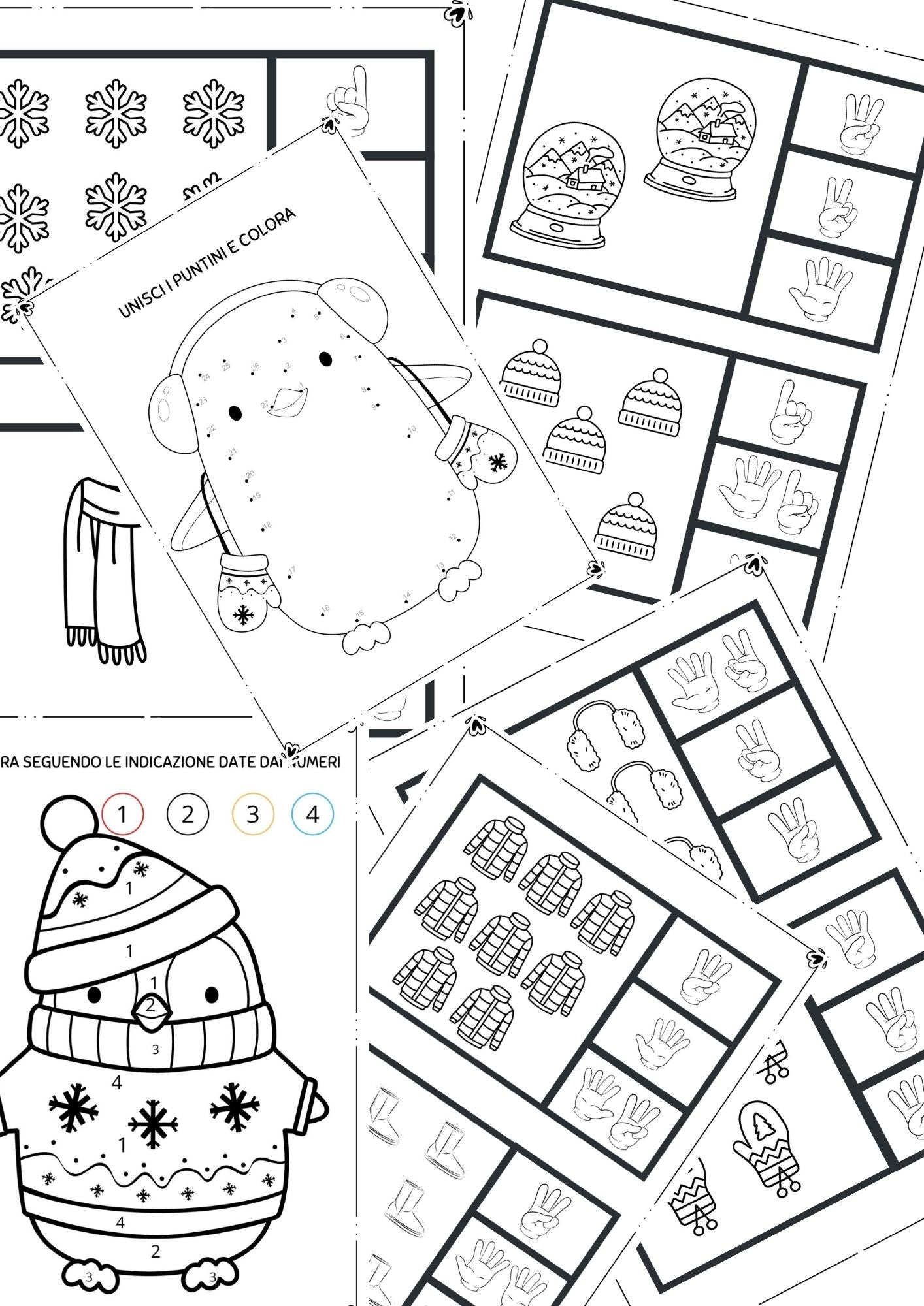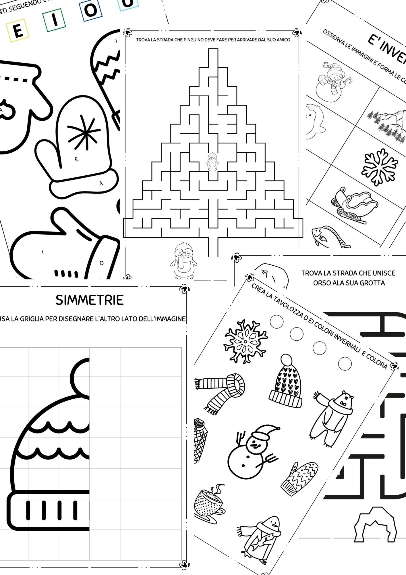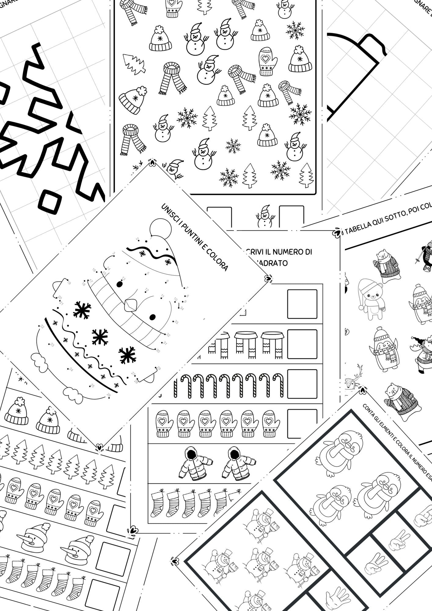 Quaderno operativo dell'inverno con schede didattiche per alunni di 5 anni.