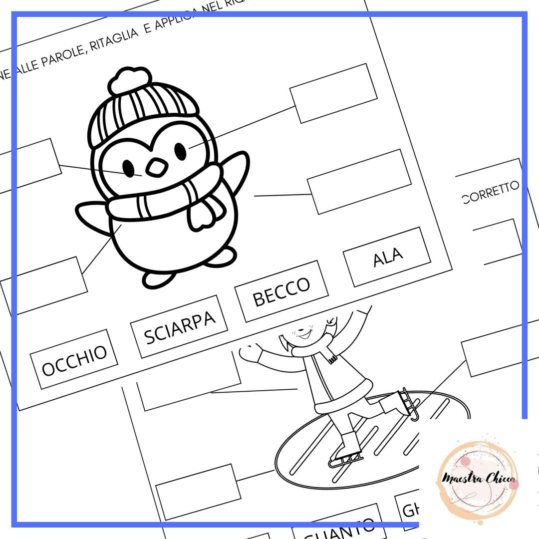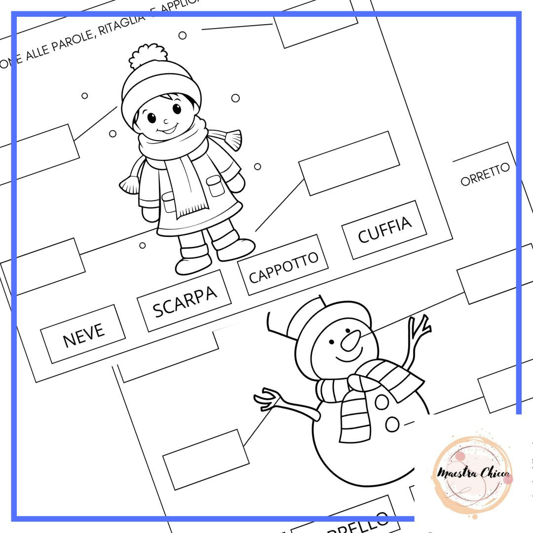 In ogni scheda trovai 4 parole invernali da riconoscere ed applicare nel riquadro corretto, puoi copiarle o ritagliarle ed incollarle.