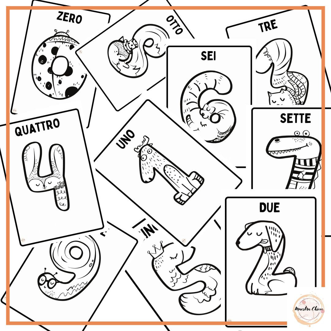 In questo PDF trovi le schede con i numeri dallo 0 al 9.