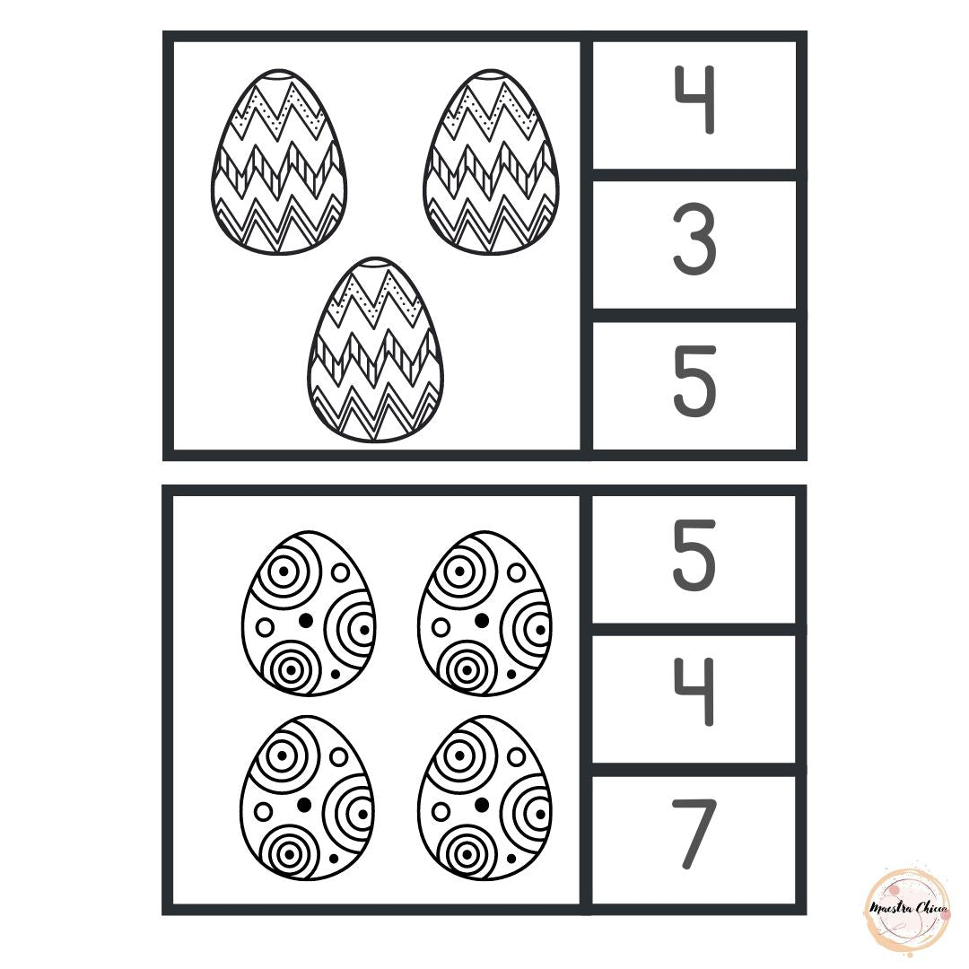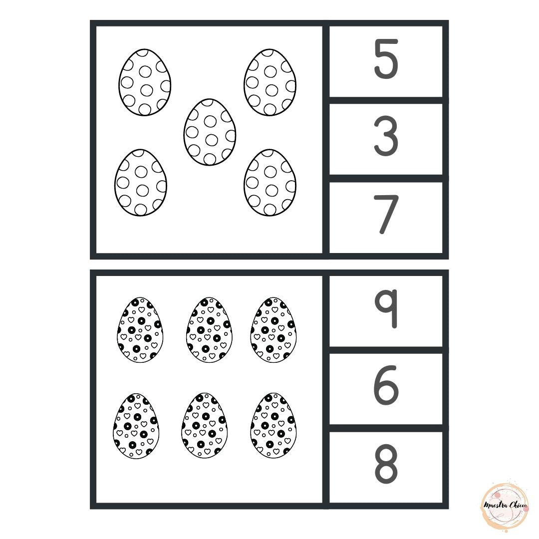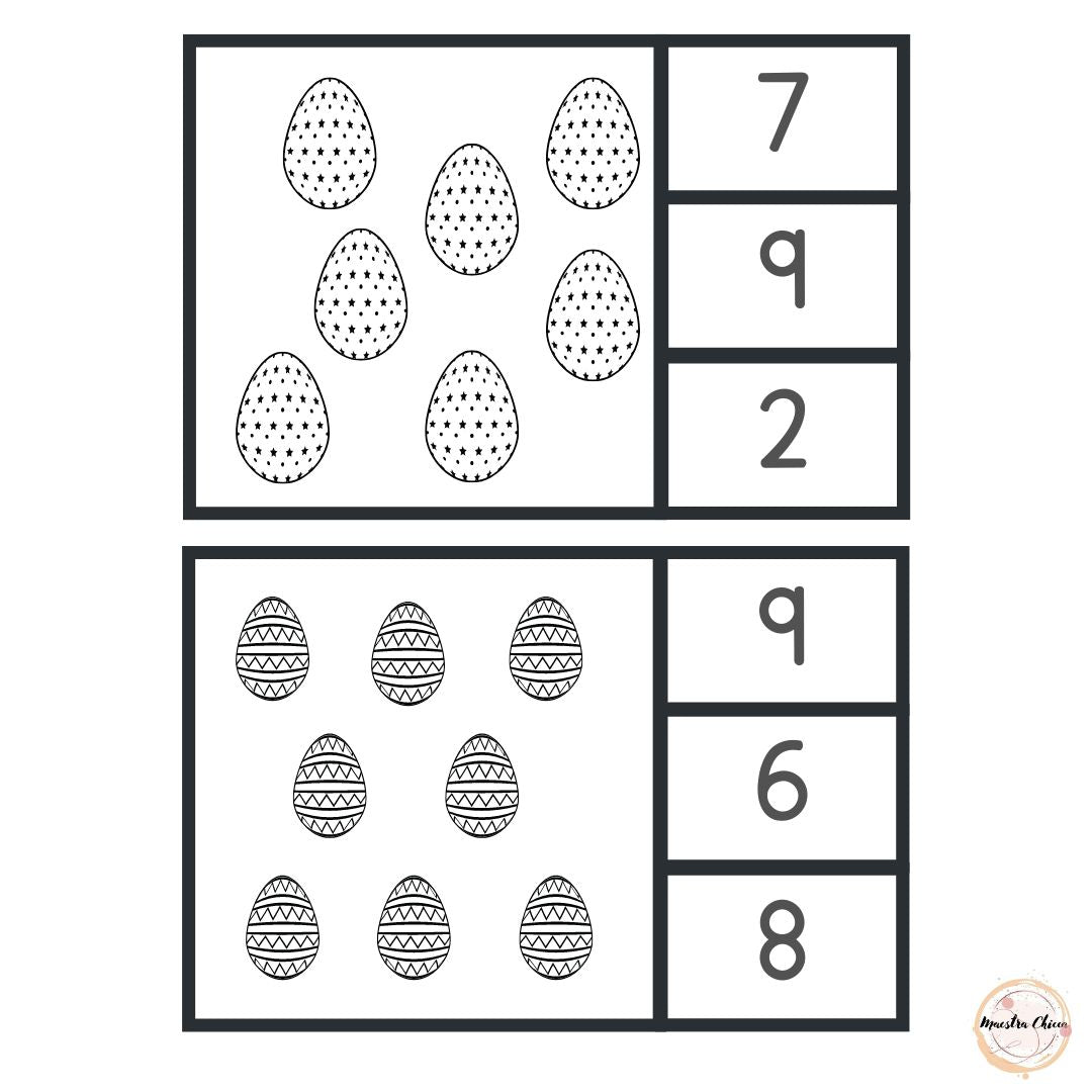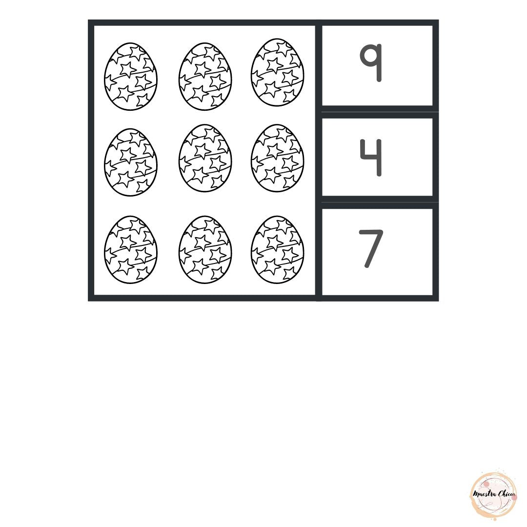 Conta quante uova ci sono nel quadrato e cerchia il numero corrispondente. Colora.