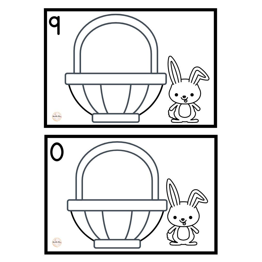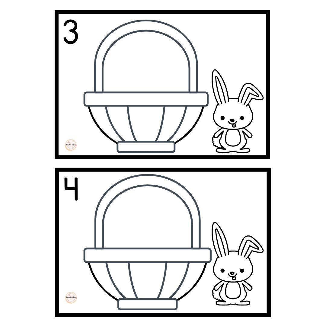 Disegnare tante uova nel cestino quanto indicato dal numero sulla sinistra.